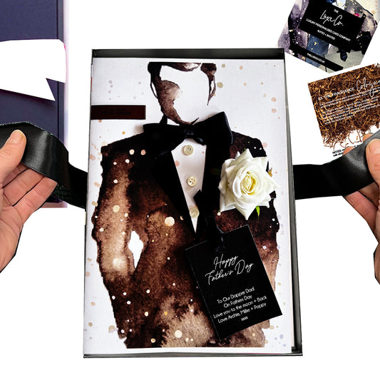 A lot of thought goes into our handmade cards. It's the attention to detail that makes a gift out of opening. Our luxury personalised handmade cards have been designed to be a treat to open. Housed in luxury gift boxes, designed with silky ribbon bow ties to wrap around boxes (pre-tied, for you to slip over the box before giving). We want to make a real treat out of opening one of our cards. Like a gift.