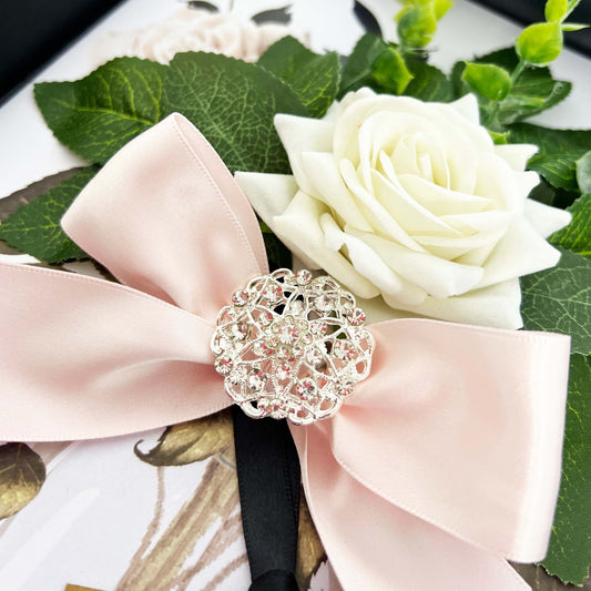 A lot of thought goes into our handmade cards. It's the attention to detail that makes a gift out of opening. Our luxury personalised handmade cards have been designed to be a treat to open. Housed in luxury gift boxes, designed with silky ribbon bow ties to wrap around boxes (pre-tied, for you to slip over the box before giving). We want to make a real treat out of opening one of our cards. Like a gift.