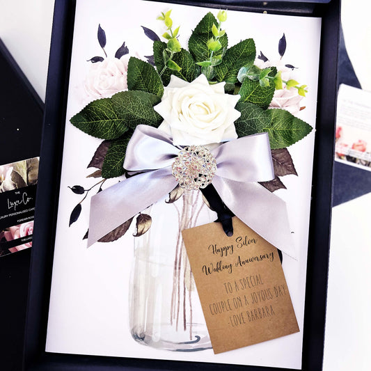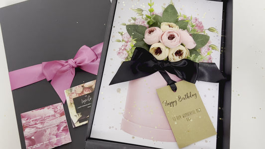 A lot of thought goes into our handmade cards. It's the attention to detail that makes a gift out of opening. Our luxury personalised handmade cards have been designed to be a treat to open. Housed in luxury gift boxes, designed with silky ribbon bow ties to wrap around boxes (pre-tied, for you to slip over the box before giving). We want to make a real treat out of opening one of our cards. Like a gift.