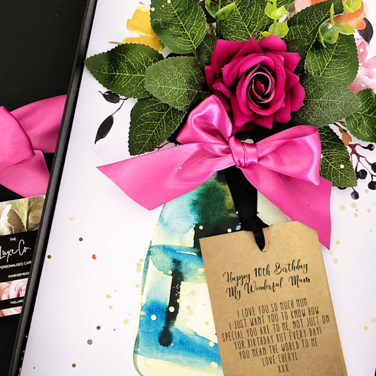 A lot of thought goes into our handmade cards. It's the attention to detail that makes a gift out of opening. Our luxury personalised handmade cards have been designed to be a treat to open. Housed in luxury gift boxes, designed with silky ribbon bow ties to wrap around boxes (pre-tied, for you to slip over the box before giving). We want to make a real treat out of opening one of our cards. Like a gift.