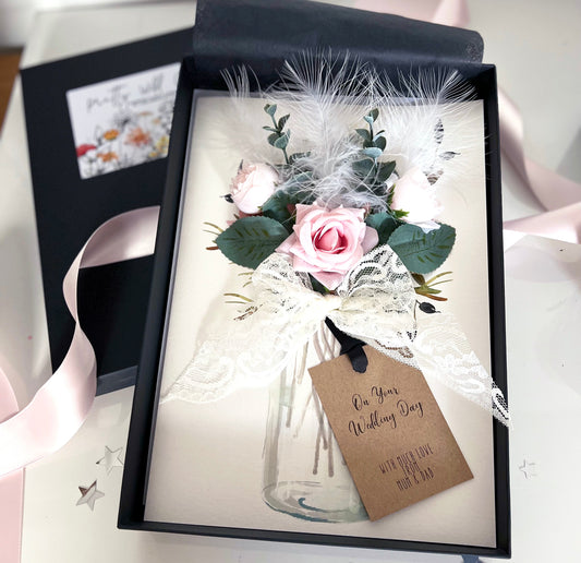 A lot of thought goes into our handmade cards. It's the attention to detail that makes a gift out of opening. Our luxury personalised handmade cards have been designed to be a treat to open. Housed in luxury gift boxes, designed with silky ribbon bow ties to wrap around boxes (pre-tied, for you to slip over the box before giving). We want to make a real treat out of opening one of our cards. Like a gift.