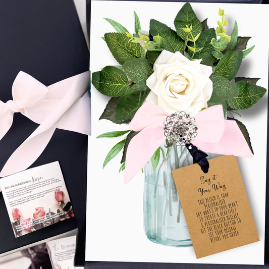 A lot of thought goes into our handmade cards. It's the attention to detail that makes a gift out of opening. Our luxury personalised handmade cards have been designed to be a treat to open. Housed in luxury gift boxes, designed with silky ribbon bow ties to wrap around boxes (pre-tied, for you to slip over the box before giving). We want to make a real treat out of opening one of our cards. Like a gift.