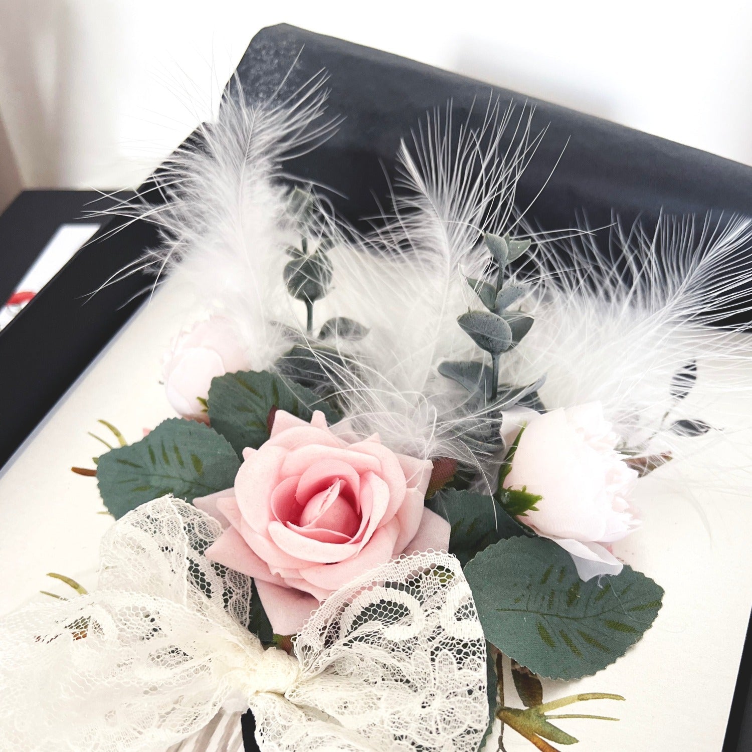 Hecho a mano a la perfección, pero que dura para siempre con hermoso encaje telar, follaje artificial, plumas y rosa de terciopelo de felpa con pétalos hechos a mano para hacer la tarjeta de rosa perfecta y el regalo de recuerdo en uno para bodas y ocasiones muy especiales. Infundido con aceite de fragancia de rosas: una impresionante fragancia de pétalos de rosa que sale de la caja de regalo de la tarjeta cuando el destinatario la abre. Con notas altas de aceite de pétalos de rosa, notas medias de rosas inglesas recién cortadas y vainilla y notas base de dulces y polvorientos capullos de rosas persas.