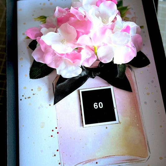 Designer Birthday 50th Perfume Bottle Card with Flower Explosion