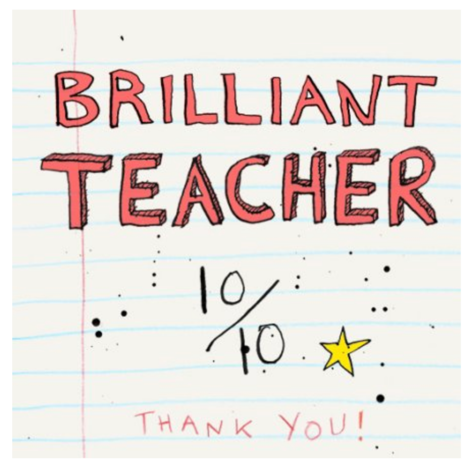 Do you know a 10 out of 10 Teacher that deserves a Thank You for all that they do? Let your teacher know just how amazing they are with our Brilliant Teacher Card. Say happy thank you with our A star teacher card.