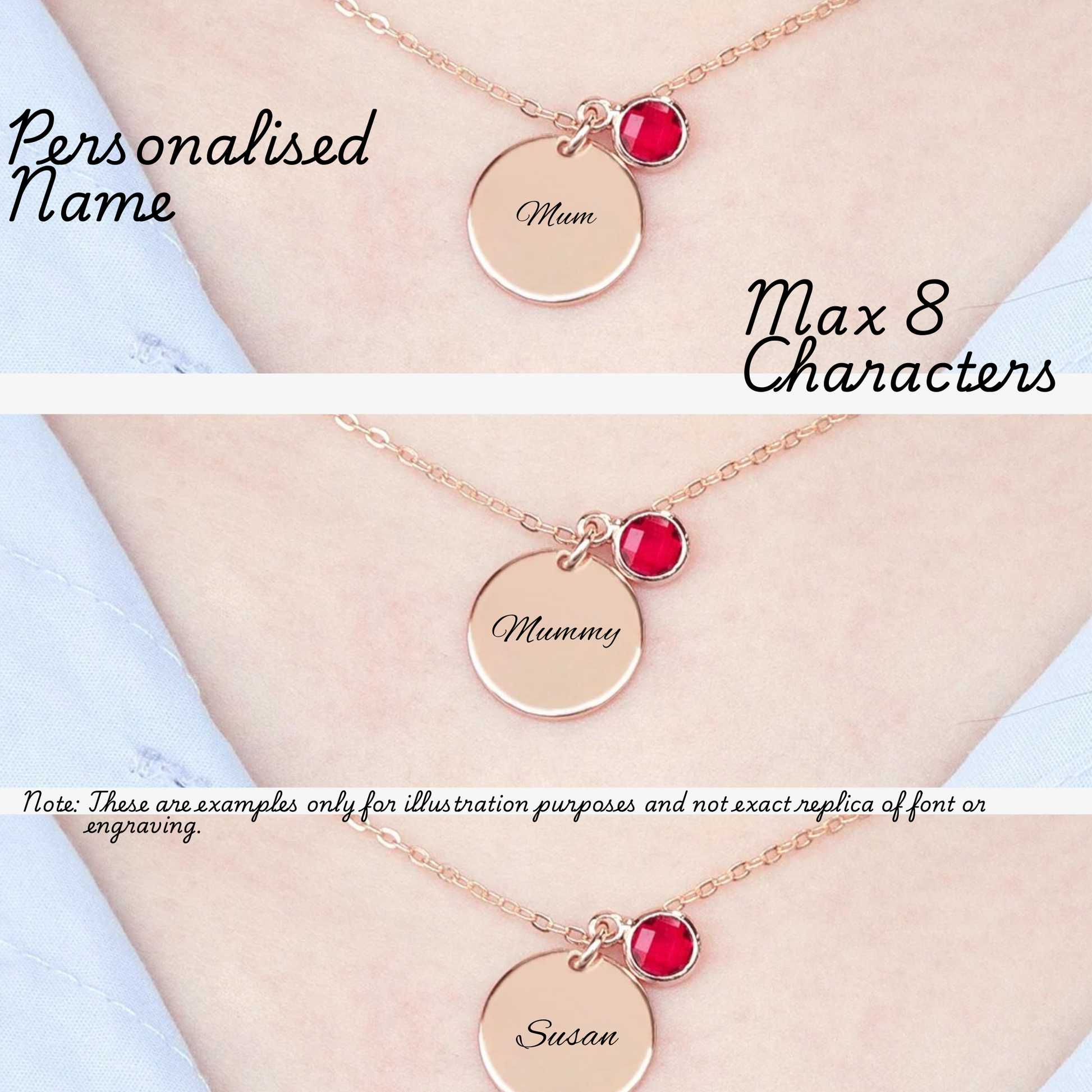 This delicate birthstone Mum necklace is a heartfelt reminder of the bond you share with those you love most. Personalised with Mum's name, or Mum, Mother, Mummy - you decide.