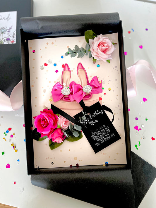 A lot of thought goes into our handmade cards. It's the attention to detail that makes a gift out of opening. Our luxury personalised handmade cards have been designed to be a treat to open. Housed in luxury gift boxes, designed with silky ribbon bow ties to wrap around boxes (pre-tied, for you to slip over the box before giving). We want to make a real treat out of opening one of our cards. Like a gift.