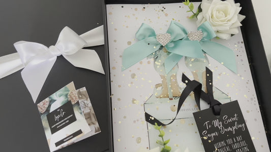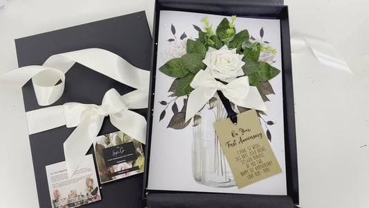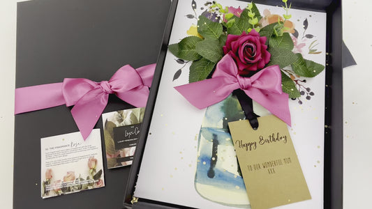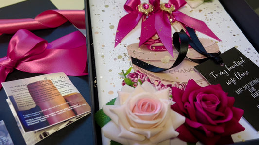 A lot of thought goes into our handmade cards. It's the attention to detail that makes a gift out of opening. Our luxury personalised handmade cards have been designed to be a treat to open. Housed in luxury gift boxes, designed with silky ribbon bow ties to wrap around boxes (pre-tied, for you to slip over the box before giving). We want to make a real treat out of opening one of our cards. Like a gift.