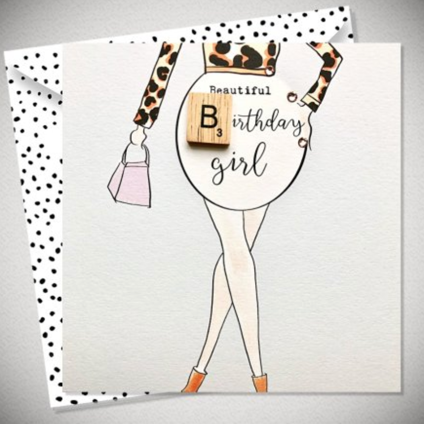Show someone you care with a Bexy Boo polka and leopard print card with a 3d scrabble piece.