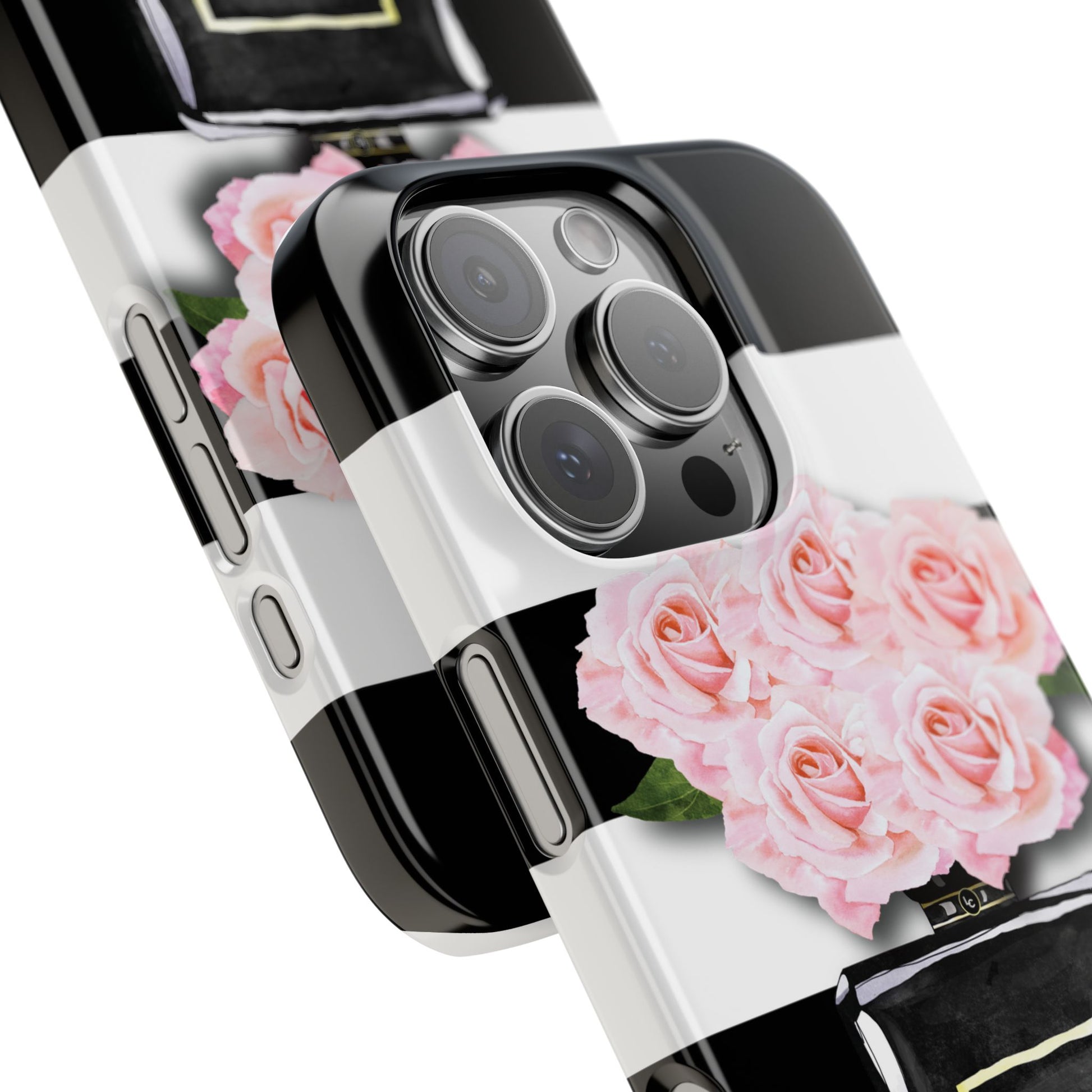 A personalised 60th gift for the classy & fabulous lady on her 60th birthday - The Panache monochrome stripe and blush rose Mobile Phone Cover