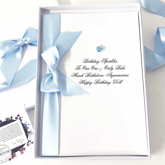 March Birthstone Aqua Marine Crystal Boxed Bedazzled Birthday Card