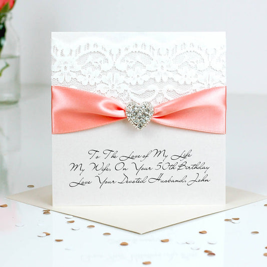 A lot of thought goes into our handmade cards. It's the attention to detail that makes a gift out of opening. Our luxury personalised handmade cards have been designed to be a treat to open. Housed in luxury gift boxes, designed with silky ribbon bow ties to wrap around boxes (pre-tied, for you to slip over the box before giving). We want to make a real treat out of opening one of our cards. Like a gift.