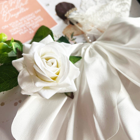 A lot of thought goes into our handmade cards. It's the attention to detail that makes a gift out of opening. Our luxury personalised handmade cards have been designed to be a treat to open. Housed in luxury gift boxes, designed with silky ribbon bow ties to wrap around boxes (pre-tied, for you to slip over the box before giving). We want to make a real treat out of opening one of our cards. Like a gift.