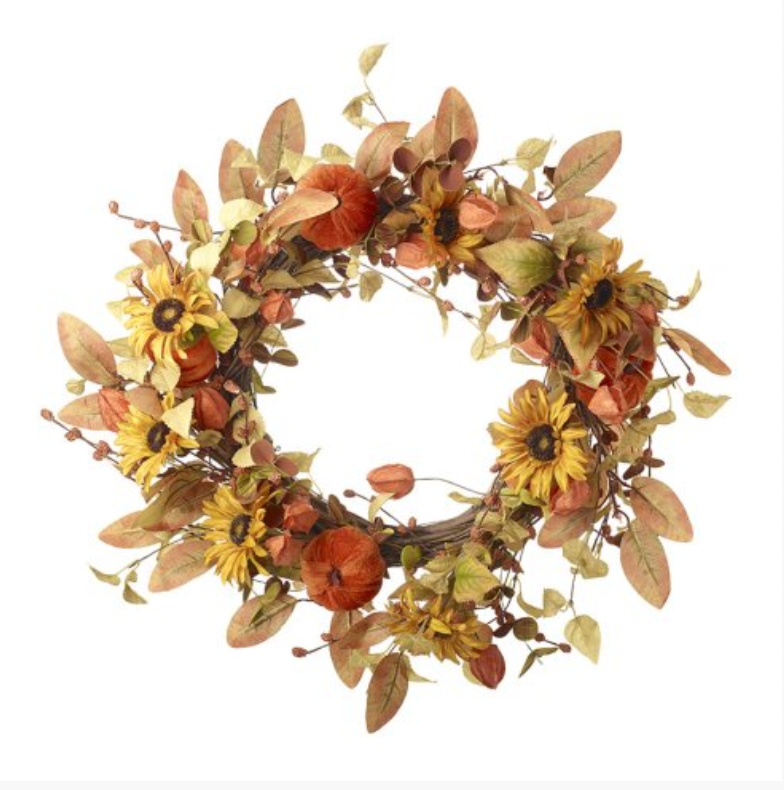 Limited Stock Autumn Sunflowers and Velvet Pumpkin Foliage Wreath