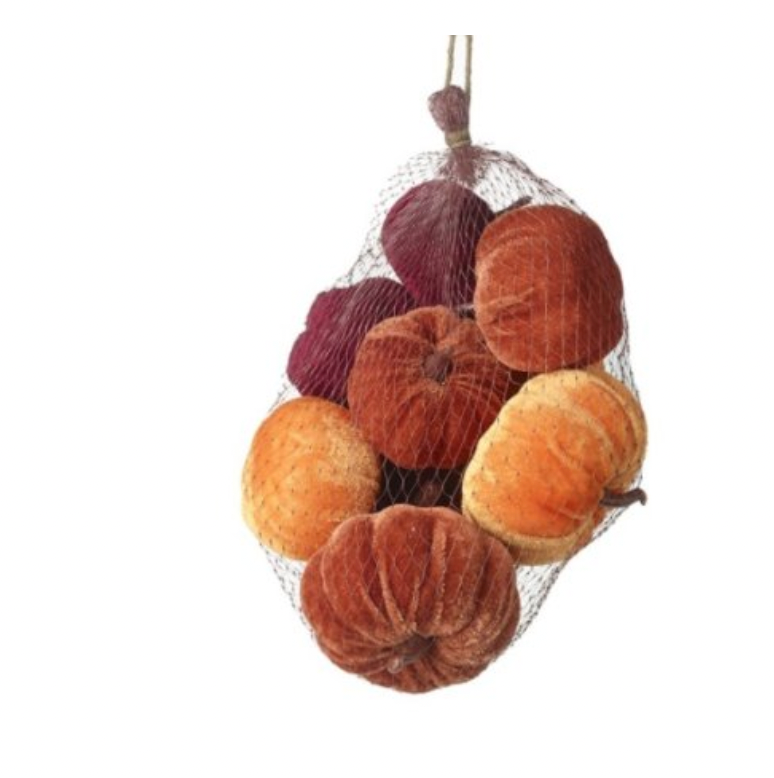 A bag of beautiful velvet pumpkins to get your home ready for the cosy autumn season. Dot around the house, on a shelf, by the fire place. These are absolutely beautiful.