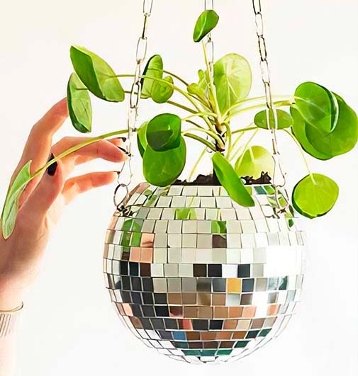 Create shards of light all around the room with this cool disco ball hanging planter.